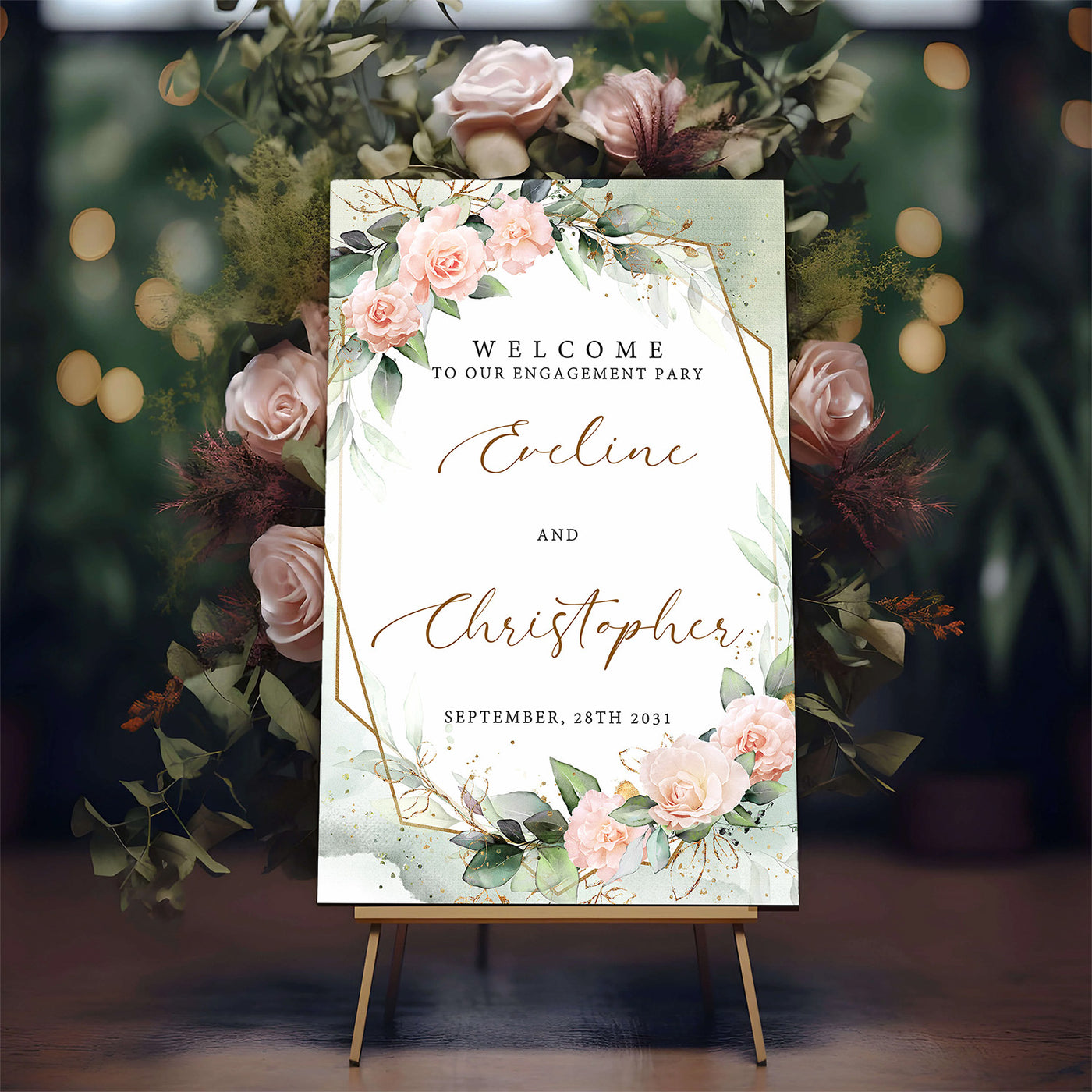Welcome your guests in style with our chic Engagement Party Welcome Sign—perfect for setting the tone for your celebration.